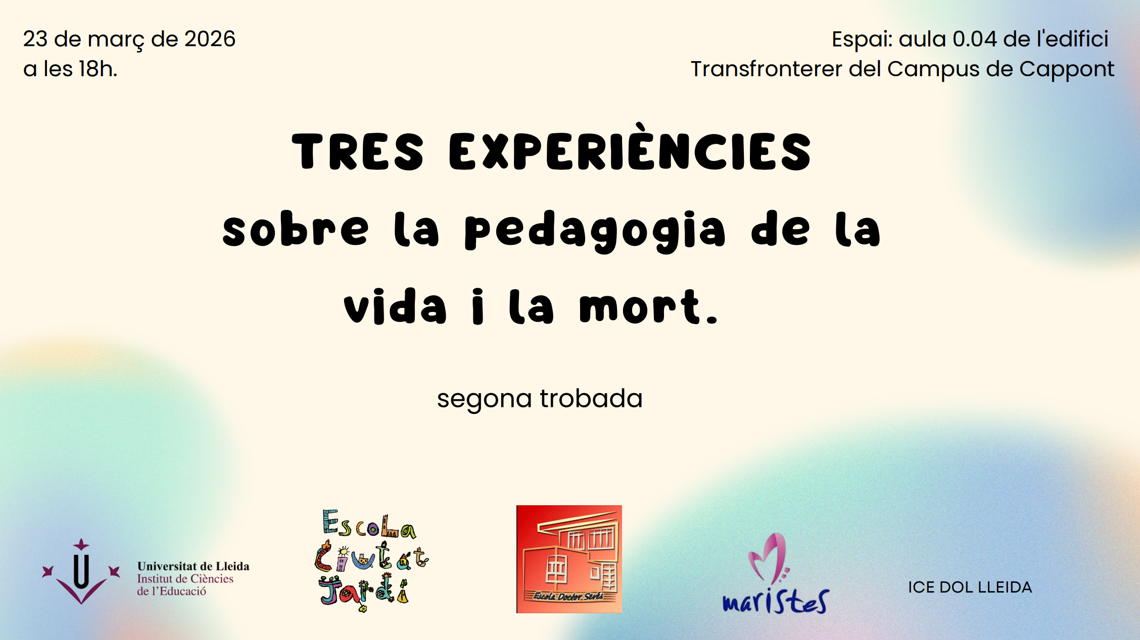 En aquesta trobada, les escoles Ciutat Jardí, Doctor Serés i Maristes Lleida, compartiran de quina manera donen resposta, a aquest tema, a les seves aules. És tot un plaer comptar amb la seva mirada i experiència. De ben segur, serà una interessant i bonica tarda!