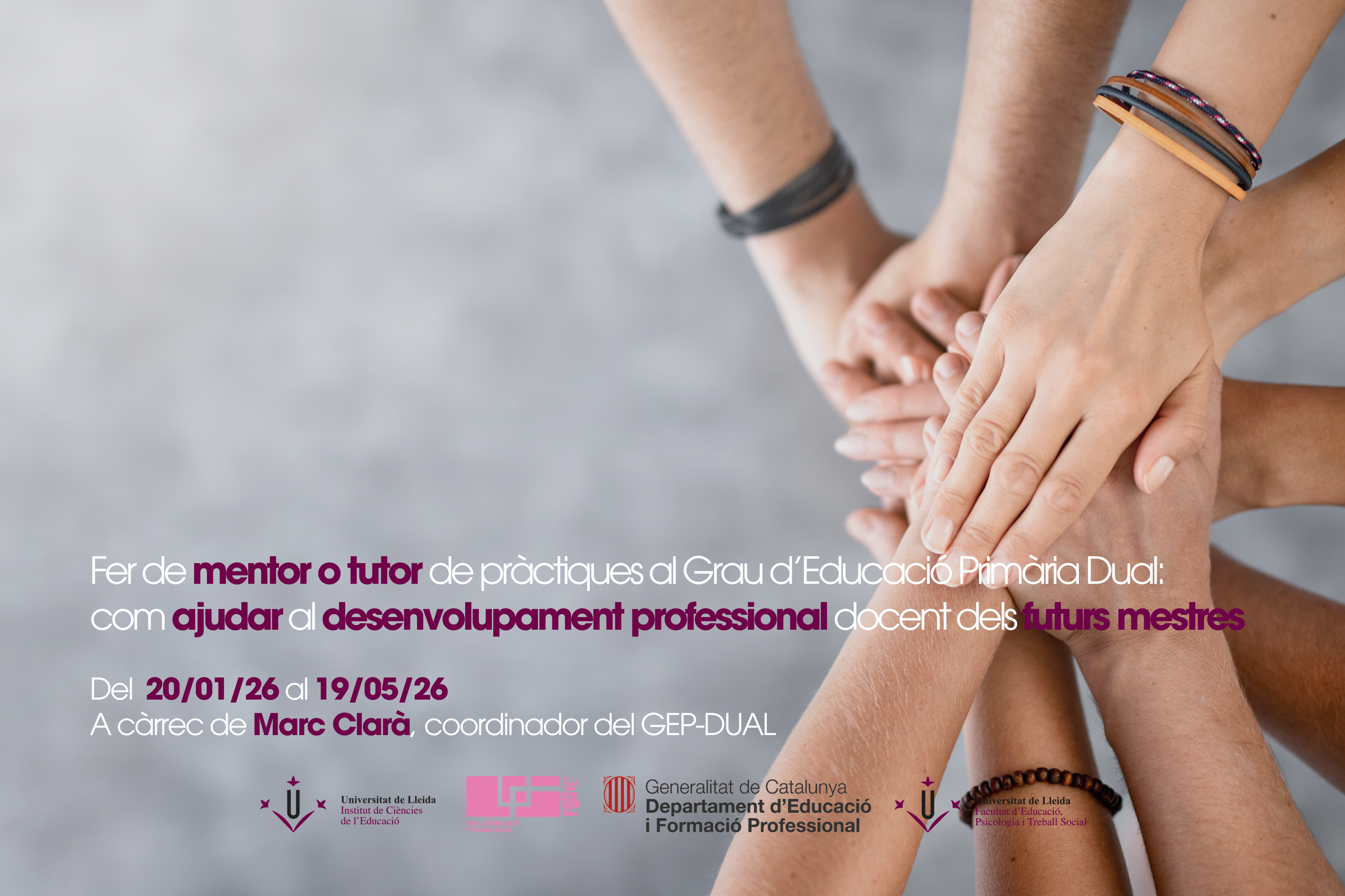Es tracta d'un curs d'aprofundiment en les formes d’ajuda que mentors i tutors poden oferir als seus aprenents per tal de promoure el seu desenvolupament professional com a docents, en el marc singular del Grau en Educació Primària Dual que ofereixen la Universitat de Lleida juntament amb els centres escolars vinculats.