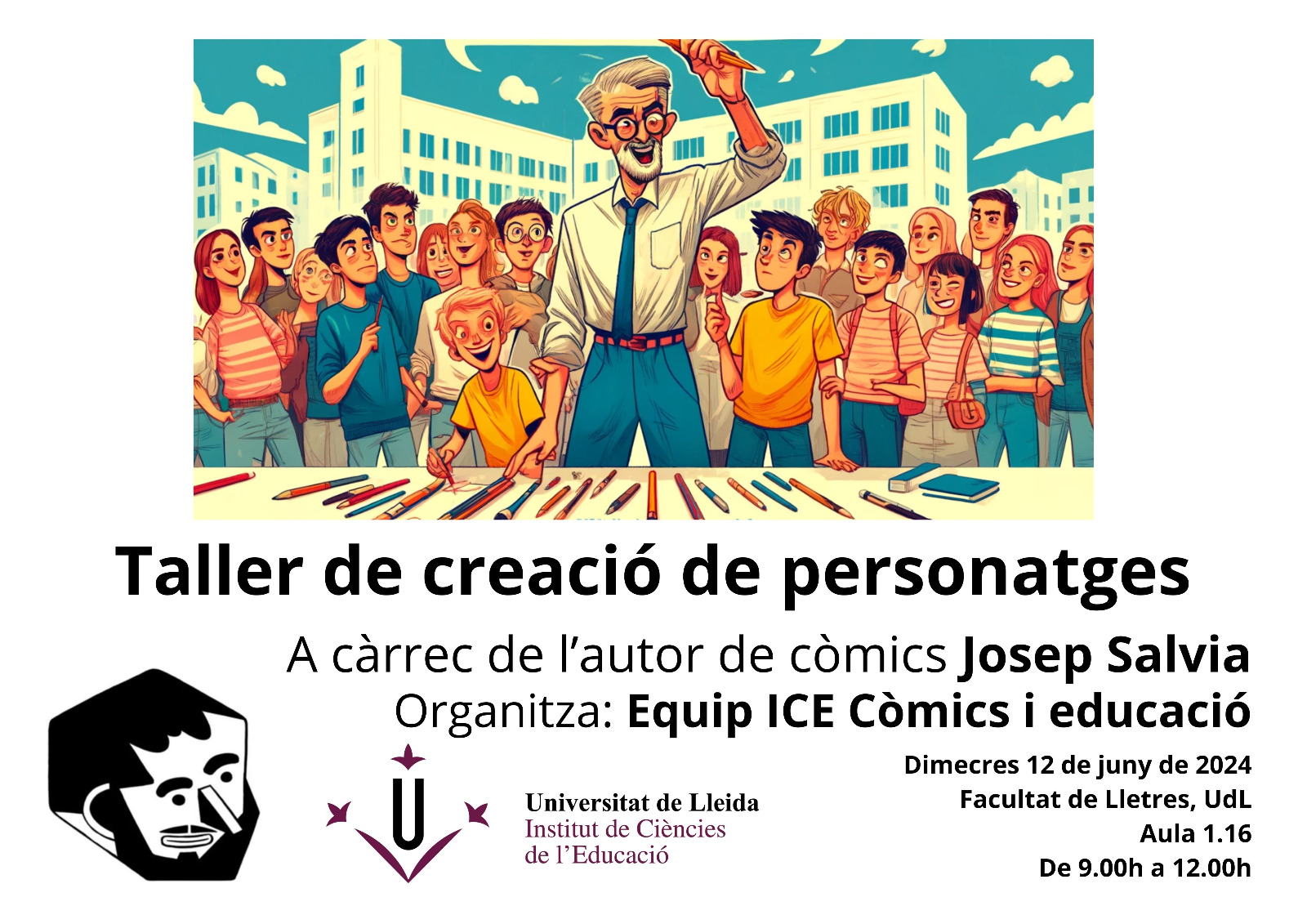 El més jove dels equips ICE, l'Equip ICE Còmics i educació, ha preparat aquesta sessió dirigida a alumnat de secundària, en la qual tindran l'oportunitat de treballar amb l'autor de còmics Josep Salvia. Una oportunita única per aprendre de primera mà alguns dels rudiments del món del còmic amb el guiatge d'un gran artista de les terres de Lleida.